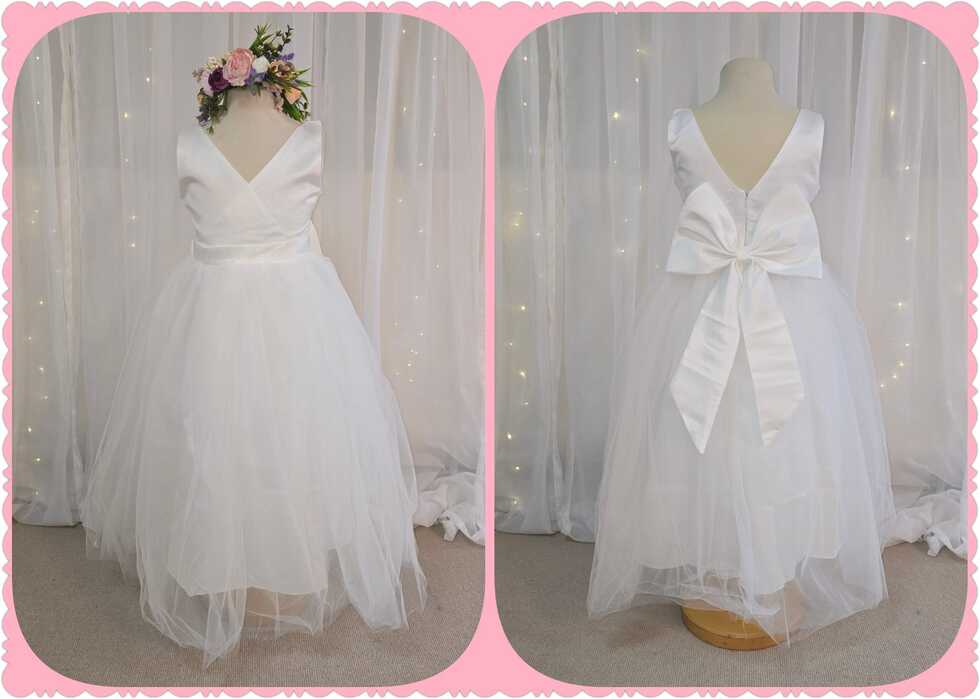 Each dress features a charming bow detail — the perfect finishing touch for your little one’s walk down the aisle.